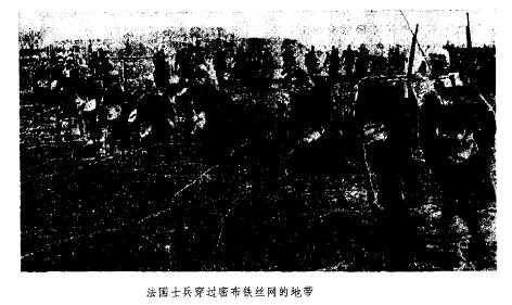 法国士兵穿过密布铁丝网的地带