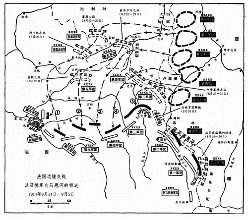 法国边境交战以及德军向马恩河的推进(1914年8月14日-9月5日)