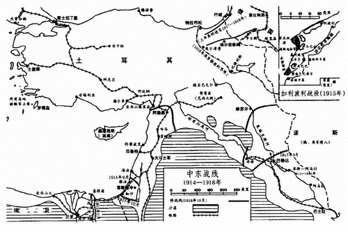 1918年9月19-21日,美吉多之战 凌晨4时30分,英军炮兵实施集中射击,随即英军全线推进。第二十一军沿海岸撕开了一个大口子,沙漠骑兵军由此涌入。与此同时,英国空军轰炸铁路交叉点和所有的土军军团司令部,并使土军的通讯联络完全瘫痪。骑兵部队穿过溃散的土军第八军团向北急进,在次日上午早些时候进抵埃斯德赖隆平原。至9月20日黎明,英军步兵向东的巨大的旋转运动已经完成。到这时,耶拉德帕夏的第八军团已不复存在,凯末尔的第七军团正混乱不堪地向东退往约旦河。英军骑兵横扫并通过拿撒勒,赞德尔斯勉强逃脱追捕。随后英军骑兵转而向东,于9月21日,抵达紧位于加利利海以南的约旦河。仅有赞德尔斯的德军亚洲军(2个团)仍然保持着表面上的秩序,而在他们四周,到处是逃窜的散兵游勇。