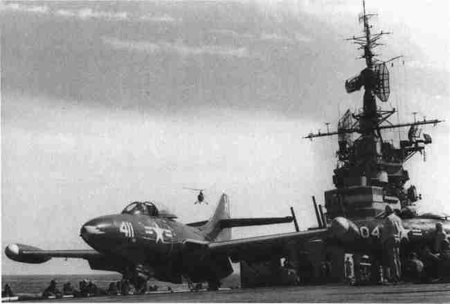 1950年9月4日,航母舰载飞机与苏联飞机交战。那时2艘快速航母地处中国的山东半岛和朝鲜海岸之间,几乎横跨三八线,黄海在此处只有130海里(240.55千米)宽,是一个限制性很大的作战区域。袭击主要针对从朝鲜平壤到镇南浦一带的打击目标。驶离朝鲜海岸的77特遣舰队离中国不到100海里(185.04千米),离苏联位于辽东半岛的海军和空军基地也差不多的距离。在喷气式飞机时代,这意味着位于朝鲜海岸的航空母舰正在与相距只有10分钟飞行距离的敌方海军基地作战。