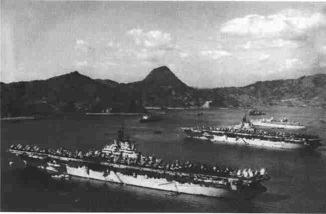太平洋舰队所有的5艘航空母舰全部都像这样的投入到了朝鲜战争中。和它们一起的是许多的巡洋舰、驱逐舰和飘扬美国、英国、澳大利亚和加拿大国旗的护航舰。