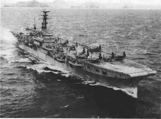 在远东地区的第二艘航空母舰是位于日本水域的英国轻型航母“凯旋”号(Triumph),它是该地区英联邦军队的一部分,它还包括2艘轻巡洋舰,3艘驱逐舰(其中一艘是澳大利亚的)和3艘巡逻护卫舰(其中一艘是澳大利亚的)。“凯旋”号舰载12架Mk 47型“海火”(Seafire)战斗机和12架Mk 1型“萤火虫”(Firefly)战斗机。这些都是活塞引擎飞机,其中休泼马林公司(Supermarine)生产的Mk 47型“海火”战斗机是此型飞机的最终机型,它是Mk 24型“喷火”(Spitfire)战斗机的海军型,于1948年进入海军航空兵部队服役;费尔利公司(Fairey)的Mk Ⅰ型“萤火虫”战斗机是一种双座战斗攻击机,于1943年开始服役。