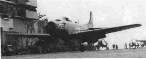 一架VA-195攻击中队的AD-4“空中袭击者”战斗机从“普林斯顿”号航母上起飞前去攻击华川水坝。这架战斗机携带有1枚Mk 13航空鱼雷(带有雷头保护罩)和凝固汽油箱。“空中袭击者”证明是一款出色及多用途的飞机,可以从美国和英国的航母上起飞,也可以从陆地基地起飞。(《美国海军》)