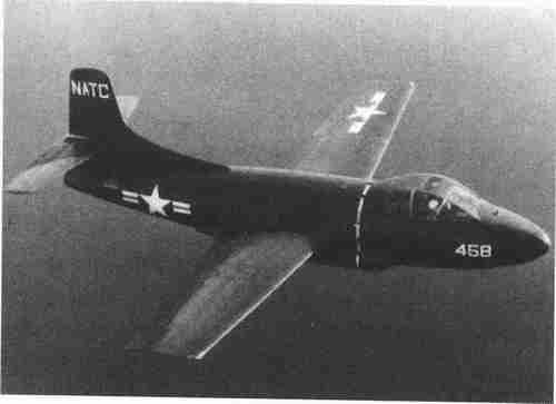 道格拉斯公司生产的F3D型“空中骑士”战斗机是世界上第一种专门为夜间作战设计制造的喷气式战斗机。从图中它的原型机XF3D-1可以看出驾驶员和雷达操作手并肩而坐进行操纵,它的最终型号F3D-2。在1.5万英尺(4572米)高度最大飞行时速可达每小时490英里(788.56千米).初始爬升率可达每分钟2970英尺(905.26米),最大飞行高度36700英尺(11186.16米)。(《美国海军》)
