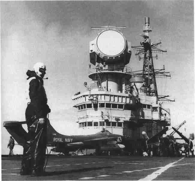 尽管资源有限,第二次世界大战战后时期,英国皇家海军还是在各个方面引领了航空母舰技术的发展。轻型航母“竞技神”号(Hermes)在建造时得到重新设计。1960年,它和“海雌狐”(Sea Vixen)全天候战斗机一同亮相。飞行甲板上层建筑顶端的巨大3-D雷达天线为984型。这种雷达天线后来也安装在更加大型的“皇家方舟”号(Ark Royal)、“鹰”号(Eagle)和“胜利”号(Victorious)航空母舰上。