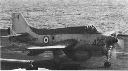 为了满足海军白天作战需求,超级马林公司设计生产了“弯刀”战斗机。这种只有一个驾驶位置双引擎飞机是第一批英国轻型航母飞机,能够进行超音速飞行和小角度俯冲。起飞时可承载的重量接近3.4万磅(15433千克),“弯刀”具有卓越的携带能力,4个翼下塔架中的每一个都能携带多达1000磅(454千克)的武器。攻击机的典型装载量为2枚1000磅(454千克)的炸弹和2个100加仑(456升)的燃油箱,或24枚口径3英寸(76.25毫米)火箭或4枚“小斗犬”导弹。“弯刀”安装了4门口径30毫米的大炮用于作战并携带了“响尾蛇”导弹。飞机上还安装照相机用于执行侦察任务。