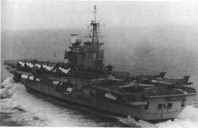 阿根廷1958年7月购买了英国轻型航母“勇士”号。“勇士”号1946年建造完工,1946~1948年租借给加拿大海军作为试验船用于橡胶飞行甲板和无起落架飞机的研究,1957年作为总战舰用于英国圣诞岛的核试验。阿根廷1959年7月将其重新命名为“独立”号(Independence)。“勇士”号最初承载的是美国海军F4U-5和F4U-5N型“海盗船”(Corsair)战斗机,后来又补充了鸥翼飞机,再之后又被6架从美国购进的S2F-1“追踪者”反潜机和几架HSS-1通用直升机所取代。“海盗船”战斗机1965年末结束了其在阿根廷的服役期,它们是优良的服役飞机的最后一批。