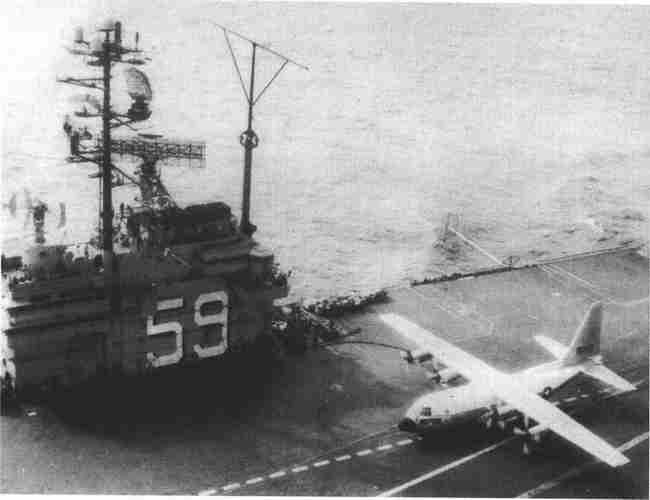 从航母上起降的最大的飞机是由詹姆斯·弗拉特利上尉驾驶的KC-130F“大力神”飞机。洛克希德“赫克”(当时最广泛使用的战术运输机)是具有短距离起降特点的常规运输机。尽管1963年在“福莱斯特”号航母上进行的测试取得了成功,但这样大型的飞机经常用于作战是不切实际的。