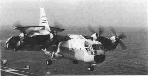 20世纪60年代,一些奇特的飞机开始登上美国航母。其中有两种大型飞机:广泛使用的4引擎C-130“大力神”运输机与XC-142垂直/短距起飞和着陆运输机(VSTOL)。20世纪30年代末期,皇家海军研发了2架用于航母的四引擎侦察机:空速AS39和通用飞机有限公司的GAL38,但二者都未登上航母。