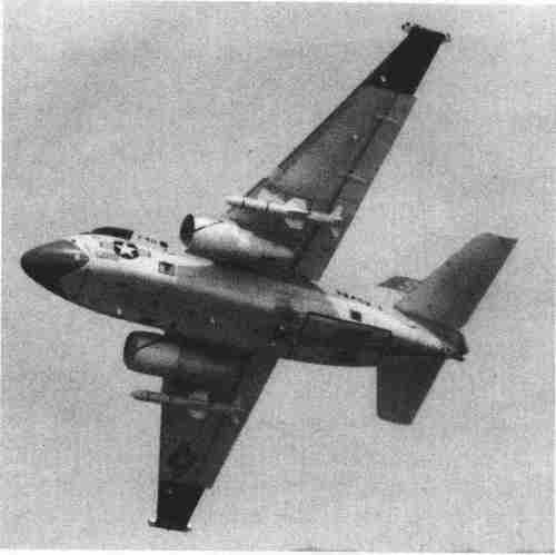 洛克希德公司的S-3“海盗”攻击机是最大的舰载式反潜战斗机。这架携带两枚“渔叉”空对地导弹的S-3战机显露出其机身下的声呐浮标滑道;其尾部的磁性异常探测杆被收回。S-3战机是按照装备活塞式发动机“搜索者”的尺寸设计制造,但其速度更快,所运输的反潜传感器材也更多。其内部武器舱可以容纳4枚轻型反潜鱼雷,可以承载2400磅(1088.64千克)的武器或者备用油箱。它的最大时速为海平面上500英里/小时(804.63千米/小时);巡航距离约为2650英里(4264.56千米)。(洛克希德公司)