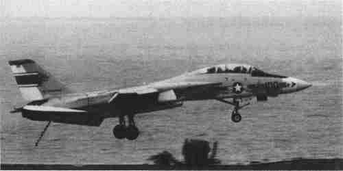 取消F-111B计划之后,海军设计了一种新型战机,它上面配有AN/AWG-9雷达,并且承载了“凤凰”导弹。这就是由格鲁曼公司开发制造的F-14“雄猫”战斗机,它在很长一段时期内一直是海军的宠儿。F-14战斗机是一种可变翼战斗机,它的机翼可以伸展,便于巡航、着陆和起飞,机翼的后掠能保证高速飞行。机翼可以在飞行员驾驶期间自动变化。作为双座战斗机的F-14从一开始就充当攻击机的角色,然而自1973年1月服役后,这种飞机一直没有进行相关的升级。它可以携带重达1.45万磅(6577.19千克)的机外挂载物。最初的飞机具有4个机身导弹位置(4枚“麻雀”(Sparrow)导弹/4枚“凤凰”导弹)和两个机翼导弹位置(4枚“响尾蛇”(Sidewinder)导弹/2枚“麻雀”导弹/2枚“凤凰”导弹);有时通过减少导弹而携带油箱或者侦察设备吊舱。F-14B/D系列适用于携带“铁弹”及激光制导炸弹;F-14D同时还为空对地导弹配置了塔架配接器及内径为20毫米的“火神”(Vulcan)“机关炮”。