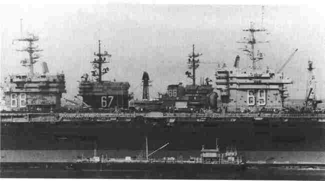 随着长期服役的“中途岛”号航母1992年退役后,美国海军也拥有了一支全通大甲板航母部队。这张特殊照片展示的是4艘超级航母于1985年10月停泊在美国弗吉尼亚州的诺福克码头边:从左依次是美国军舰“尼米兹”号、“约翰·F.肯尼迪”号、“美国”号和“德怀特·D.艾森豪威尔”。2008年“小鹰”号退役后,美国海军的航母部队就全部是核推动航空母舰了。