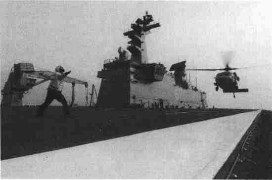 美国海军MH-60S“海鹰”直升机在最近建成的韩国两栖舰“多口”(Doko)号上着陆,该舰于2007年11月在日本海上执行任务。2007年7月服役的、18860吨的“多口”号和后来的“马拉岛”(Maradao)号与小型航空母舰相似。它们拥有一个可以容纳气垫着陆飞机的船坞。请注意一下“多口”号的航母型右舷岛式的结构。这样的“两栖舰”在未来可以搭载美国联合攻击战斗机的F-35B垂直短距起落变型机,而且直升机也将具有非常重要的海上作战能力。(克里斯汀·莱穆斯(ChristianLemus),《美国海军》)