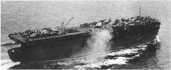 “长岛”号先锋护航航母在战争的大部分时期都作为1艘飞机运输舰出现,只参加过1次战斗。在1942年8月的苦难岁月里,“长岛”号为美军运送所需的战机到瓜达尔卡纳尔岛。作为1艘运输舰,它再也不能起飞和降落战机了。(《美国海军》)