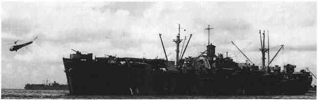 海军也已经在这次战争中投入运行了大量的水上飞机供应船和几艘航母商船和飞机修理船。由于美军的前方阵地需要修理设备,因此他们投入运行了6艘自由式航母作为飞机修理船。这些都是由普通的水手操作的。其中一些美军航母有直升飞机平台,上面承载了2架或者更多架“西科尔斯基”R-4(Sikorsky R-4)直升飞机,这些飞机负责航母与海岸之间的联络工作。这些是第一批定期地装载直升飞机的美军航母。