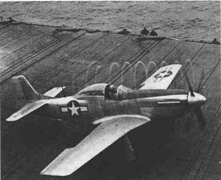 同样,美国海军也对AAF P-51“野马”战机的舰载使用进行了评估。在与F4U“海盗”战机的对战测试中,无论是在火力、最高限度的速度、飞行加速度、可操作性、控制反应方面还是起降特点方面AAF P-51“野马”战机都稍逊色于后者。P-51战机仅仅在2万英尺(6096米)以上的爬坡和最高限度的水平飞行方面要优于后者。此外,内联活塞发动机的使用将会要求航母必须储存液体散热剂,而不再需要用空气冷却的星形发动机了。这有一个故事:在模拟空战中,1架P-51D“野马”战机和1架“熊猫”战机一并从静止状态起飞。据说,“熊猫”战机在“野马”战机收起副翼和轮子之前2次超过了它。