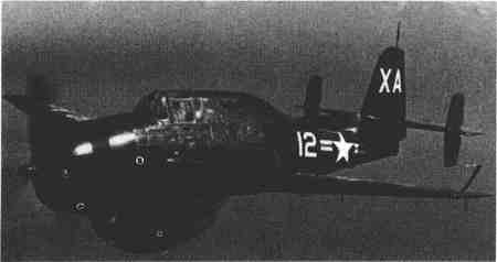 瑞恩航空公司生产的FR-1“火球”战机是一种双引擎航母舰载机,有一个活塞引擎和一个J31涡轮喷气引擎用于爆发式加速。在涡轮喷气推进下,XFR-1可达到430英里/小时(691.87千米/小时);FR-1可以在1.78万英尺(5425.44米)的高空加速到404英里/小时(650.04千米/小时)的最大速度;在单独使用活塞引擎时可达到295英里/小时(474.66千米/小时),但它可以每分钟爬升4800英尺(1463.04米),最高达到4.31万英尺(13136.88米)。安装了4架0.50英寸(12.7毫米)口径的机枪,还可以装载2个100加仑(378.5升)的副油箱或2枚1000磅(450千克)的炸弹,外加4枚5英寸(127毫米)的火箭弹。这是XFR-1第二次使用它的I-16涡轮发动机引擎在天空中翱翔。(美国瑞恩航空公司(Ryan Aeronautical))