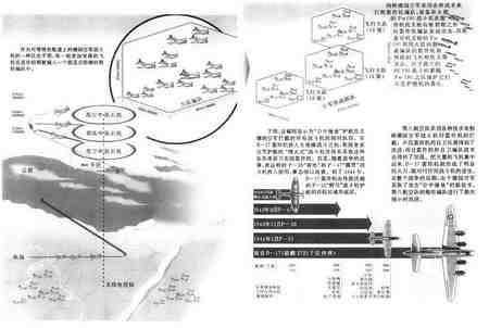 一支B-17轰炸机编队飞往欧洲的目标。这张照片清楚地显示出第8航空队采用的箱型防御编队,这使得每一架飞机都可以为相邻的飞机提供火力支持。