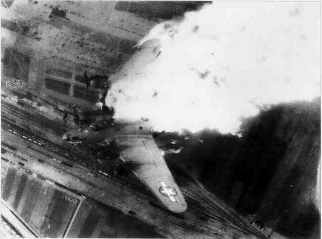 第483轰炸大队的一架B-17轰炸机袭击南斯拉夫的调车场时,在目标上空被高射炮击中而爆炸,带着机组成员一起坠向地面。