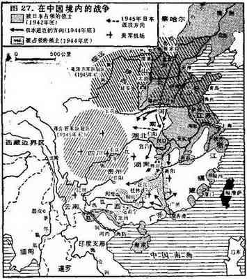 但是这些袭击已足以引起日本人的惊慌。因为他们的长期目标之一是确保北京到广州的铁路以及从衡阳通往柳州和桂林支线的畅通。那是衔接华北和印度支那的一条线路,由于海上交通越来越不安全和越来越难以保持畅通,这条铁路就日益重要了。由于日军深入内地,以致陈纳德的空军基地不得不于1944年夏季后撤。