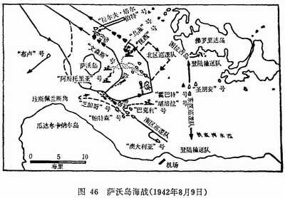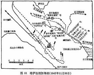 接着,进行了一场30分钟的混战。这场混战的激烈程度,是海战史上罕见的。双方队形都被打乱,交战军舰各自为战,不时发生同室操戈的情况。激战后,于午夜撤出战斗。待天亮才查明,两军损失都很严重。日军除丧失2艘驱逐舰外,阿部弘毅的旗舰“比睿”号中弹50多发,失去了机动能力,漂泊在萨沃岛以北海面,又遭到亨德森机场飞机的反复攻击,最后沉没。卡拉汉和斯科特两位将军及其大部分参谋人员在海战中阵亡。美军丧失4艘驱逐舰,其重巡洋舰“波特兰”号和1艘驱逐舰失去机动能力。此外,因敌我双方炮击而起火的轻巡洋舰“亚特兰大”号也沉入海底。轻巡洋舰“朱诺”号在拖着倾斜的舰体撤离战场过程中又遭到日本潜艇的鱼雷攻击,700名舰员同归于尽。美国军舰只有1艘没受损伤。在这次海战中,尽管日军编队占有绝对优势,但是,美军编队却英勇顽强地完成了自己的使命:迫使阿部弘毅的战列舰撤退,田中护航运输队返航。