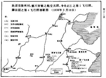 (三)德川好敏之航空兵团,在第2军开始进攻时,以主要力量予以协同、配合;在进攻徐州时,对中央军的后方要地进行攻击轰炸,实施空中和地面之航空歼灭战;阻止中央军的反攻,配合地面兵团扩大战果。