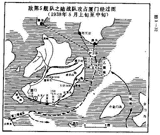 敌第3舰队一部,为控制福建沿海的厦门,经两天的登陆作战,于1937年10月28日占领了厦门以东的金门岛,直至第二年的5月10日其陆战队攻占厦门为止。