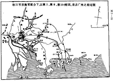 第21军在海军第5舰队的协同下,攻占广州及附近要地,切断其对外主要补给线路。