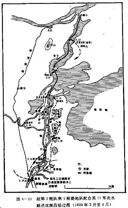 在鄱阳湖的海军部队及第116师团一部(5个大队),于3月上旬对鄱阳湖东岸的都昌沿湖地区进行扫荡,以策应南昌作战;另派出一个大队,扫清赣江下游的吴城至南昌之水路。