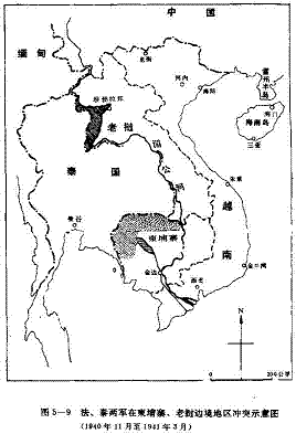 泰国数十年来,受法国、英国的强压,国土版图迭有变化。如1904年,北部湄公河沿岸的琅勃拉邦地区;1907年的柬埔寨以北巴色地区。1940年的6月12日,日泰两国签定了“日泰友好条约”,9月日军侵入法属越南北部。在日本的策划下,泰国于11月下旬,发动了对法属越南边境的进攻,11月28日法国空军轰炸了泰国的边境地区。