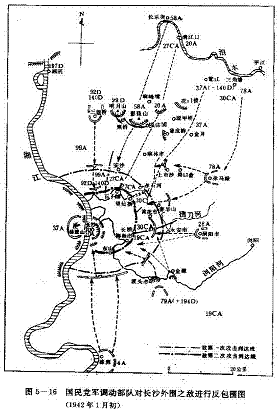 第9战区,在敌攻向长沙地区时,主力以粤汉路以东的幕阜山、九岭山区和粤汉路以西的湘江沿岸水网地区作依托,一部利用新墙河、汩水、捞刀河、浏阳河,进行正面层层抗击,并破坏这一带的道路和桥梁。敌在岳阳以南地区,以几个师团沿粤汉路两侧(此段路轨已被拆除)齐头并进、一部溯湘江向南进攻时,第9战区在新墙河、汩水地区的部队在作抵抗后则向东撤入山区,进行侧击,一部由山区返回敌后的原驻地,进行广泛的游击战。当敌经层层抵抗而越过新墙河、汩水、捞刀河,进攻至长沙附近,兵力已经分散,补给线随之延长,部队己很疲劳将返回时,第9战区则以机动部队从正面进行反攻和追击。东部山区和西部的湘江沿岸部队,则进行侧击和围堵。敌几次侵犯长沙,都从湘北这一条走廊前进和后退,而第9战区也都在这一走廊和两侧进行层层抗击和追击与围堵敌人。这次敌仍沿着这一走廊侵犯长沙。