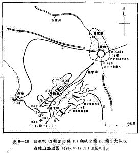 进入贵州省境的第104联队,于30日的夜间到达独山南约45公里的下司,虽遭抵抗但不猛烈。12月飞日上午到达独山以南约2丘公里的上司地区时,遭到守军的强烈抵抗,天明后又遭中、美空军的攻击、轰炸。海福三千雄根据这一情况,确定进攻独山的部署为: