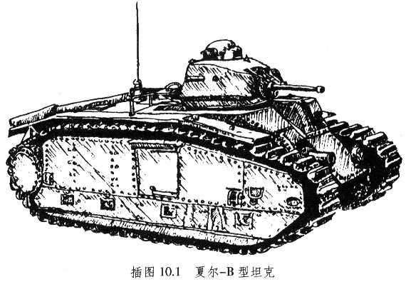。表10.1 法德轻型坦克性能比较德国法国重量(吨)7.29.8速度(英里/小时)2513最厚装甲(毫米)3045火炮(毫米)2037表10.2 法德中型坦克性能对比德国法国重量(吨)1820速度(英里/小时)2025最厚装甲(毫米)14.555火炮(毫米)3747法国还有重32吨的夏尔-B重型坦克,其时速为17英里,装甲厚度60毫米,在炮塔上装有1门47毫米火炮,在坦克车身上装有1门75毫米榴弹炮。德国坦克在重量上无法与法国坦克匹敌,虽然德国也有一种重18吨、在炮塔上装有1门75毫米榴弹炮的坦克。