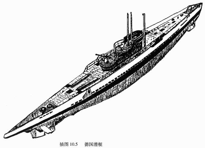 飞机在对抗潜艇的作战行动中也起主要作用。在第一次世界大战中,潜艇也曾参加海战,但那时潜艇的作用确实值得怀疑。第二次世界大战中的潜艇战役是第一次世界大战潜艇战的继续,除了潜艇探测仪或声纳等探测设备外,实践证明在发现敌人潜艇方面要比1918年的水听器好得多。德国人克服早期鱼雷性能较差所造成的困难之后,从无尾波的电子鱼雷 [ 松鼠注:应为电动力鱼雷 ] 和使用电磁、声学设备的寻的鱼雷方面得到了好处。典型的德国潜艇排水量约500吨,下潜深度将近500英尺,水面航速16节,巡航距离超过8,000英里。