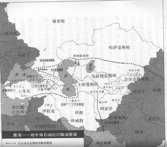 正是由于这种考虑才使油气管道问题成为影响里海盆地和中亚的未来的主要问题。如果 连接这一地区的主要的管道继续穿过俄罗斯领土到达俄国的黑海港口新罗西斯克,即使俄国 不公开地炫耀实力,这种情况的政治后果也会自然地显现出来。这个地区仍将在政治上依附 于俄国,而俄国在决定如何分配该地区的新财富问题上就会处于强有力的地位。反过来,如 果另有一条管道穿过里海通到阿塞拜疆再经土耳其到达地中海,或者还有一条管道经过阿富 汗到达阿拉伯海,那么就不会有任何一个大国垄断进入该地区的途径了。