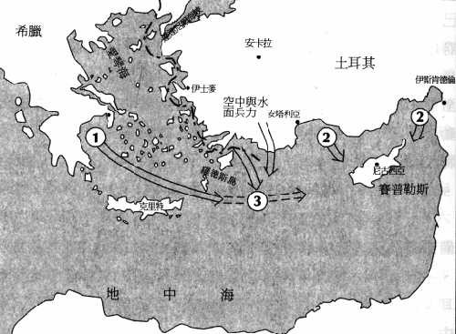 土耳其将分别自艾瓦利克、切斯美、伊士麦、库沙达西与波德伦对林诺斯、列士波斯、巧斯、萨摩斯与卡斯等岛屿发动两栖攻击。