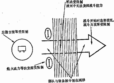 ③ 部队与装备被分割在两岸。