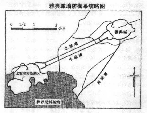 经过两次胜利之后,雅典在希腊诸国之中,也就自然跃居于领袖的地位。于是为威慑波斯再向希腊发动侵略,雅典遂提倡组织一个同盟。这个同盟以提洛岛(Delos)为基地,所以遂称为提洛同盟(Delian League)。它组成于公元前478年,可以算是世界上最早的海洋同盟,也可以说是现代北大西洋公约组织(NATO)的先驱。这个同盟的会员国最初以那些感受波斯威胁的城市国家为主,包括在小亚细亚西岸(今之土耳其)以及爱琴海半岛上的国家在内。为保护这些国家并将波斯人逐出希腊北部,雅典遂必须继续不断地扩张其海陆军兵力。同时也修建所谓“城墙”(Long Walls)以保护其本身的安全。城墙分为北、中、南三道,将雅典城与其港口区连成一体,等到城墙完工时(前456年),雅典实际上也就变成了一个陆上的岛国,由此更可显示海权对雅典的战略重要性。(城墙可参看附图)