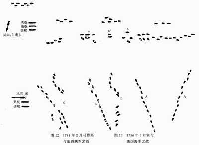 图12 1744年2月马休斯与法西联军之战 图13 1756年5月宾与法国海军之战