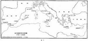 法国革命和拿破仑时期,英国在大部时间内曾是海上的唯一霸主;可是1796年它却被迫撤离地中海。地中海这一有限海域自1793至1798年,曾是均势不断发生变化的长期海战战场,最后,尼罗河一战才确立了英国的霸权(见图11)。因此,探索这一时期的重要事件是颇为值得的,因为这些事件为我们一直正在研究的事物及其正确处理的必要步骤提供了例证:这就证明我们的研究并非空谈而是出自事物的本质。