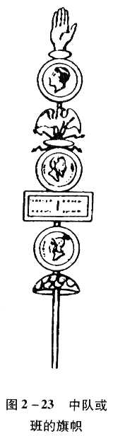 十三、鹰帜是整个军团的主要旗帜,由鹰帜手执持。每个大队的龙标手高举龙旗(带有龙的图像的旗帜)投入战斗。古人知道,交战时队列和队形很容易出现混乱和无序状态。为避免此类现象发生,他们把大队划分成百人队;每个百人队都有自己的旗帜,旗帜上标有一定的字母,表示该百人队属于哪个大队,是第几百人队。看到这样的旗帜,读到这些字母和标记,军士们无论在怎样的困境中都不致同自己的战友散失。更何况百人队长(如今称百人长)[尤其是穿着铠甲的武士长]是受命要卸下脸甲指挥自己的百人队的,这样比较容易认出他们,不至于发生差错。因为几百名军士跟随的不仅是他们的旗帜,而且还有在头盔上具有某种标志的百人队长。同时,百人队是按营帐编配的,一个营帐住10个人,由一名十人长(decanus)指挥,十人长亦称“卡普拉尔”(营帐头目)。这种编制也有叫小队的,他们是肩并肩地拼杀的单位。 [ 注:本节在英译本中序号为2-9,书中所列小标题是Centuries and ensigns of the foot(百人队和步兵的旗帜)。 ]